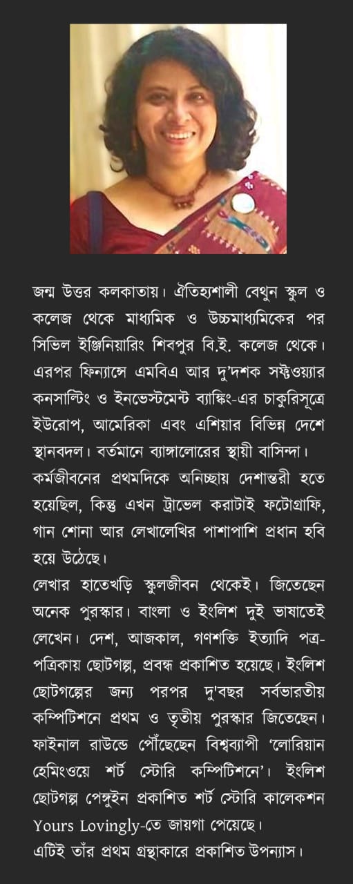 লেখিকার লেখার মুন্সিয়ানায় এই লেখা যেন অবিরত ভেসে চলে, মাটি ছোঁয় না। ভালোবাসার এই কাহিনিতে কোনো তাড়াহুড়ো নেই। নেই কাহিনিতে মোচড় এনে পাঠককে চমকে দেওয়ার কোনো অভিপ্রায়। আগাগোড়া ক্লাসিক ধাঁচে লেখা আবহমান এক রূপকথা। ঠিক যেন, যেমন ছিল...তেমন আছে...এমনই চলবে। কুলুকুলু শব্দে বয়ে যাওয়া নদীর মতো। শান্ত, গতিময় কিন্তু সম্পর্কের চোরাস্রোত মাঝেমাঝেই এলোমেলো করে দেয় দুজনকেই। লেখিকা সেই দোলাচলকে নিখুঁতভাবে বুনেছেন পাতায় পাতায়। ভীষণভাবে দমবন্ধকরা, দুঃসাহসিক!