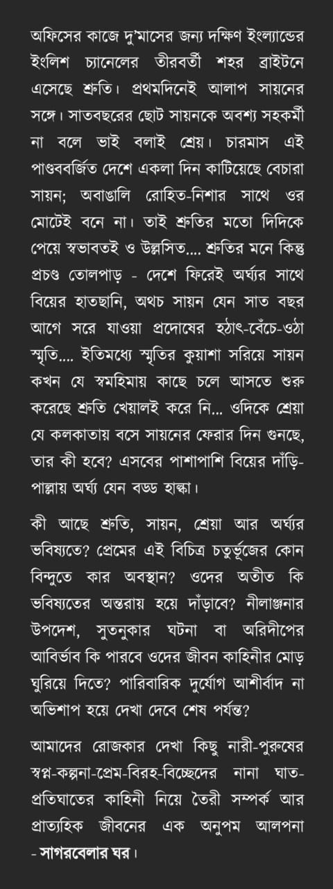 পুনশ্চ- সায়ন বাঁহাতি আর শ্রুতি ডানহাতি, এটা শুধু বোঝা গেছে অলংকরণে। উপন্যাসে কোথাও উল্লেখ নেই। 🙂